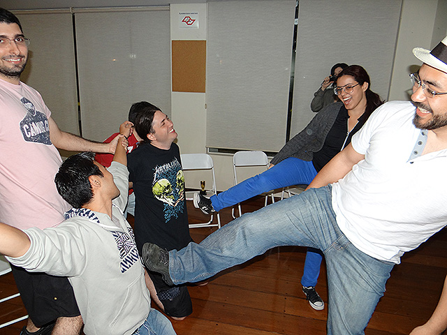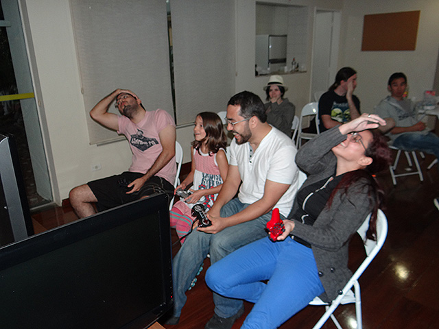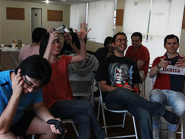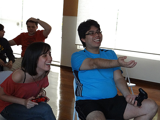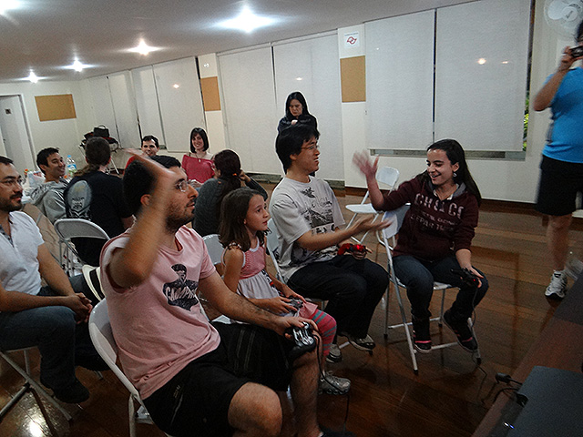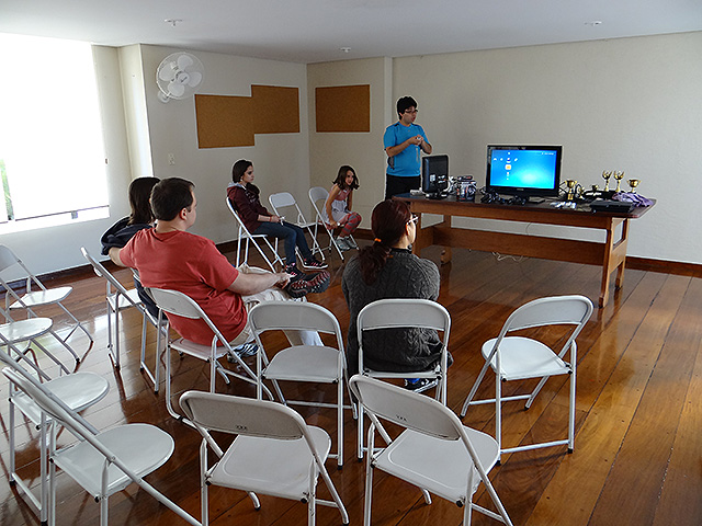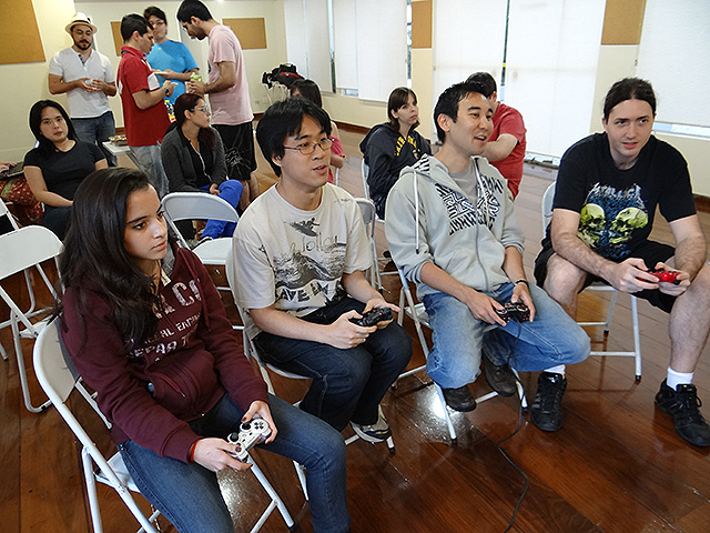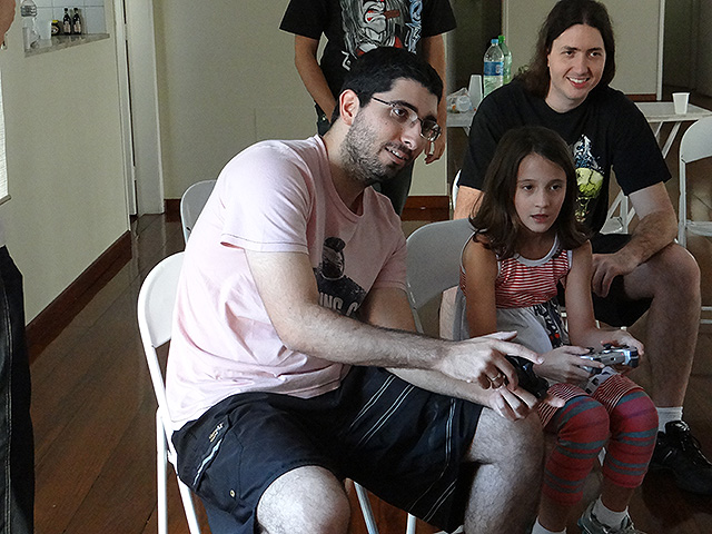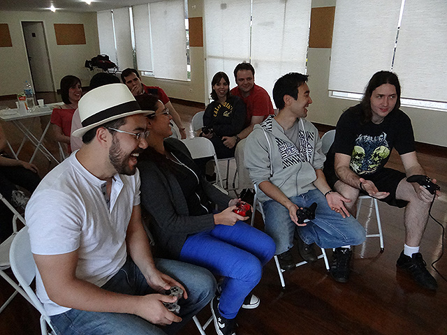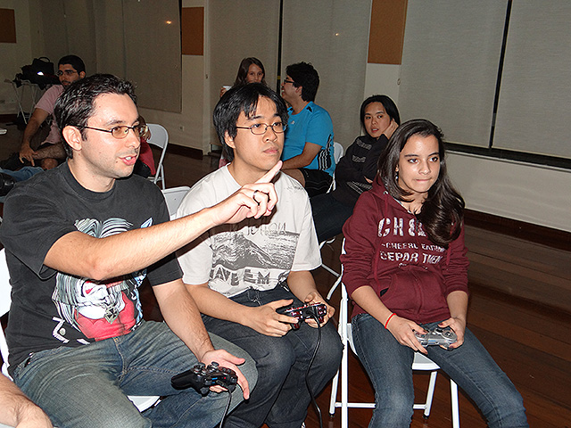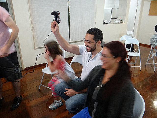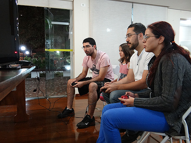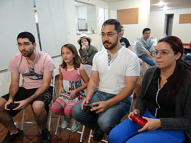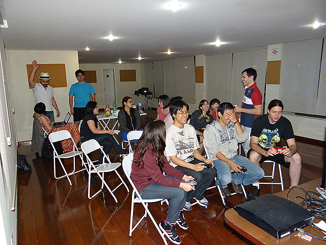 Para variar um pouco utilizamos o jogo FIFA 12 do Playstation 3 e novamente separamos os competidores em duplas que foram separadas em dois grupos com três equipes cada.